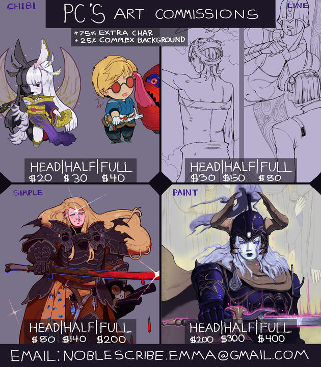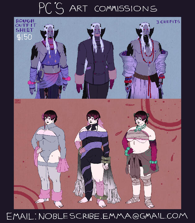 Hi! I'm PC. I do fantasy illustration and character design, sell commissions, and own an online shop. I hope to break into freelance work, and so I spend a lot of my time studying.I like things that are elegant, intense, or disconcerting; my primary influences are 19th- and 20th-century illustration, manga, and MMO fashion.I birdwatch, write, worldbuild and work on dolls in my spare time.*****